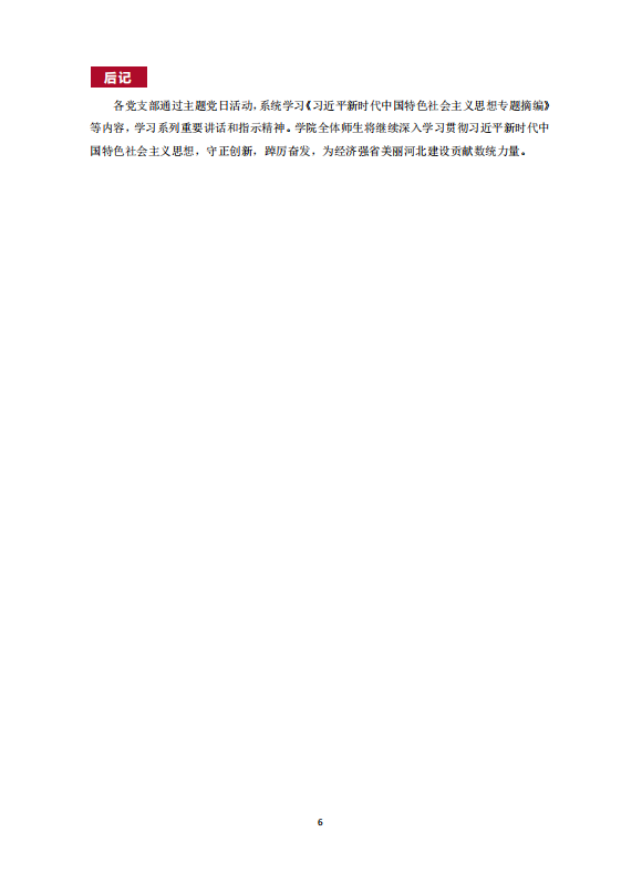 各党支部通过主题党日活动,系统学习《习近平新时代中国特色社会主义思想专题摘编》等内容,学习系列重要讲话和指示精神。公司全体师生将继续深入学习贯彻习近平新时代中国特色社会主义思想,守正创新,踔厉奋发,为经济强省美丽河北建设贡献数统力量。