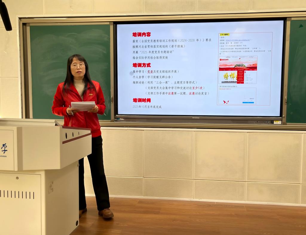 祃海霞以“2025年度党员专题培训"为切入点,在系统介绍培训目标、内容模块与时间节点的基础上,选取其中榜样人物刘玲琍的感人事迹《让每个孩子都能放飞梦想》开展集体学习。视频不长,但大家从中看到了刘玲俐扎根讲台做好一件事的坚持,看到了她用爱浇灌为责任坚守的精神。