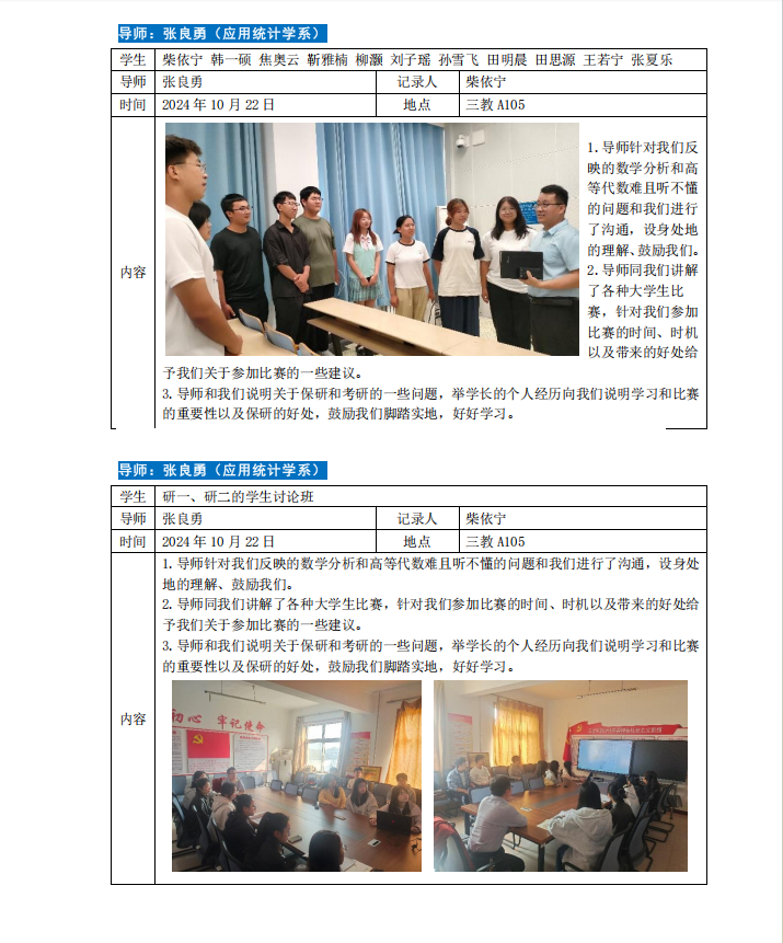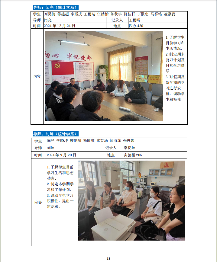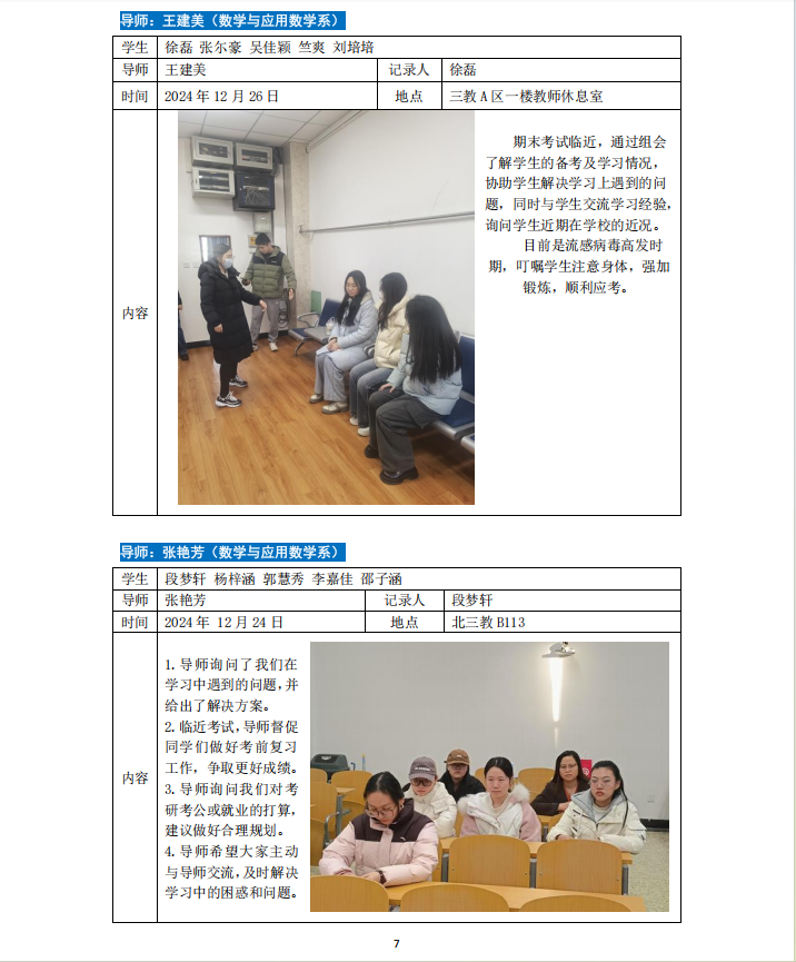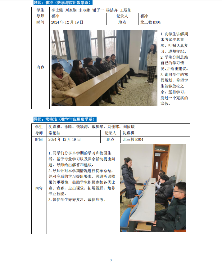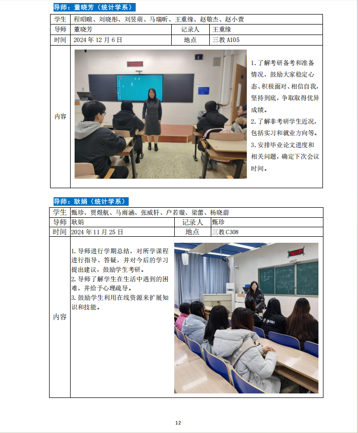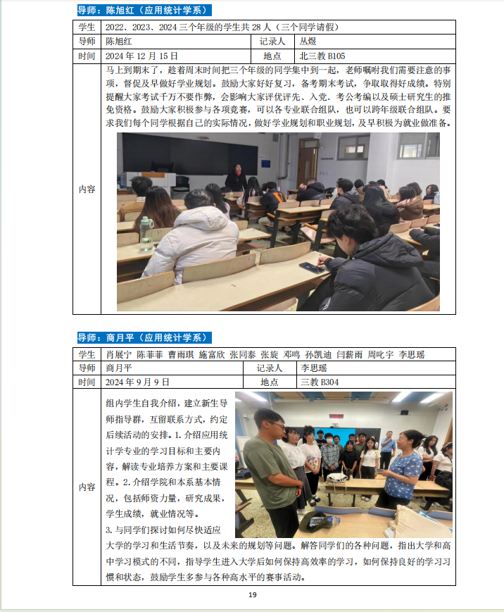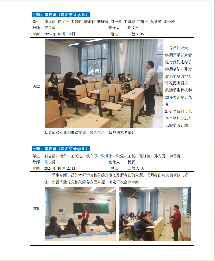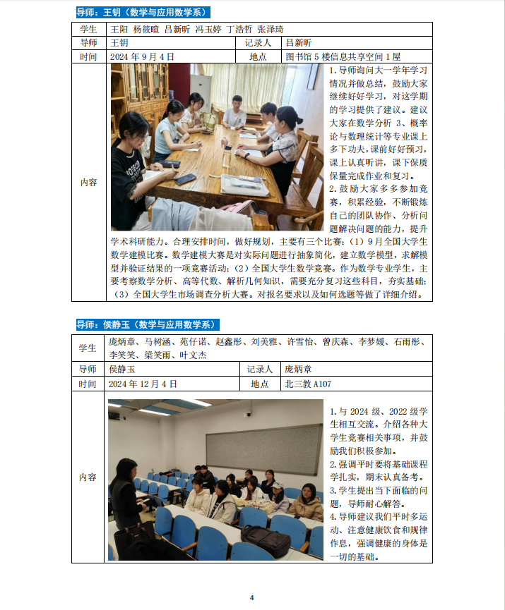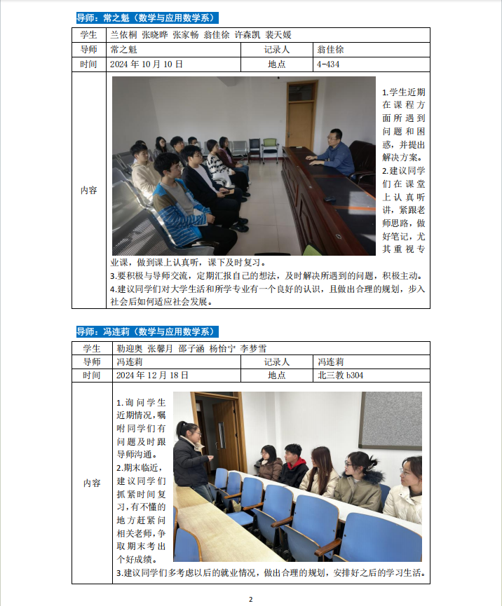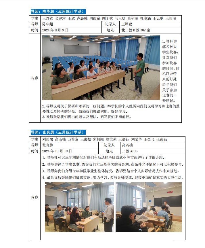 2024-2025学年第一学期专业导师引领育人活动如下。