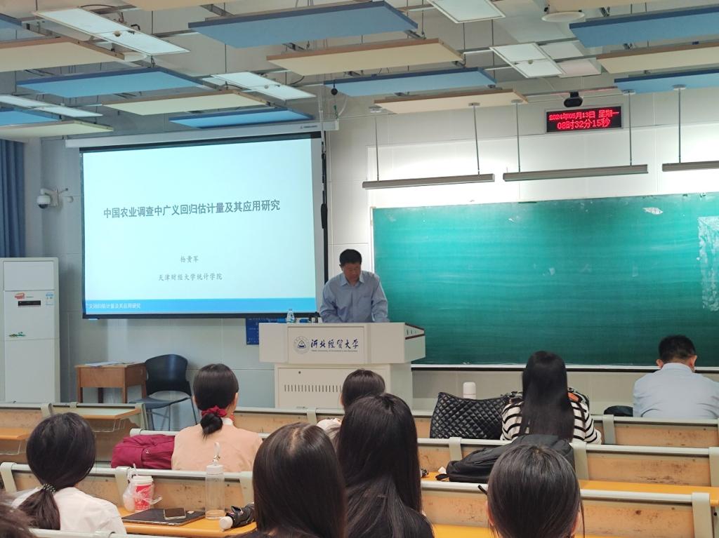 此次报告紧密结合前沿研究,深入分析了广义回归估计量在中国农业抽样调查中的可行性和适用性,为与会师生的相关研究拓宽了思路。(通讯员:张梅)