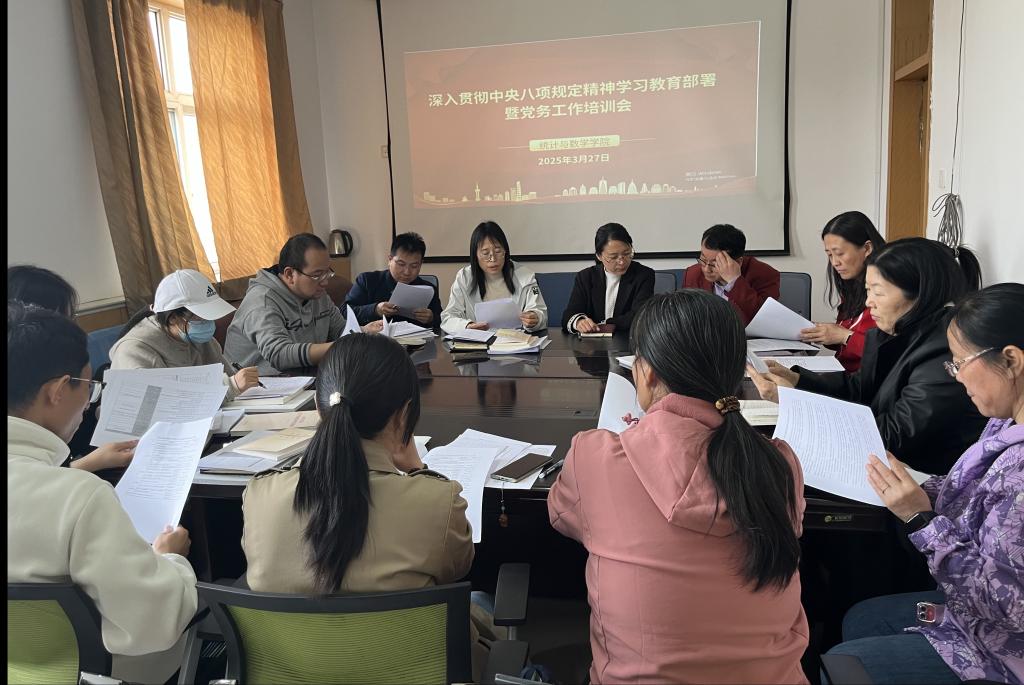 3月27日下午,太阳成集团122ccvip在四办429室召开深入贯彻中央八项规定精神学习教育部署暨党务工作培训会。公司党委书记祃海霞主持会议,公司领导班子成员路荣、王玲书、张良勇,专职组织员及各党支部书记参会。