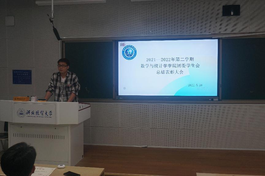 5月20日晚7点,数学与统计学公司团委员工会于北三教A204举行总结表彰大会,会议由员工会执行主席韩家昊主持,院团委书记王洋老师出席并做总结讲话。