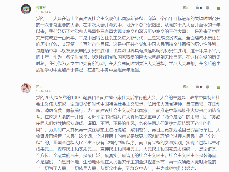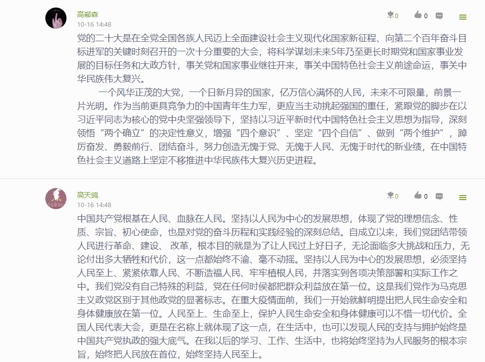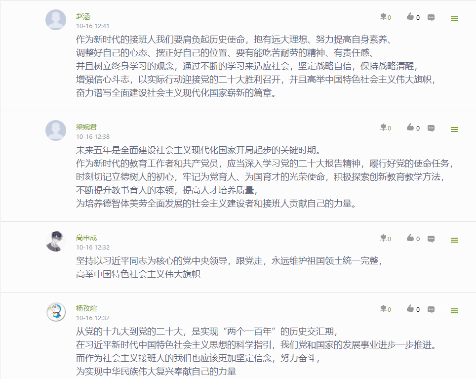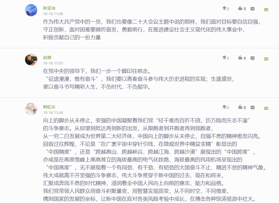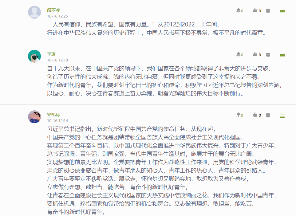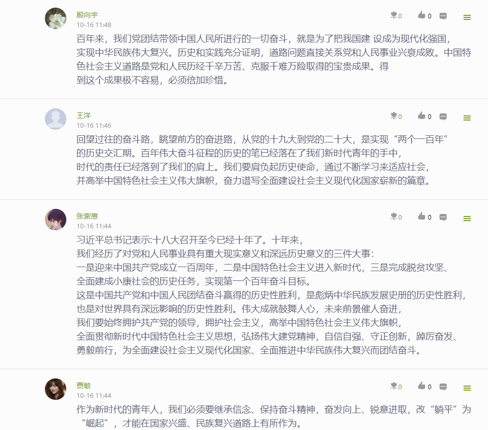 公司党委通过“指尖上的党建 行走的思政课堂”——党委学习通课程平台,建设了相关学习资源,开展了“学习大会报告,我想说…”专题学习讨论,深刻认识和把握大会报告的精神实质和丰富内涵。