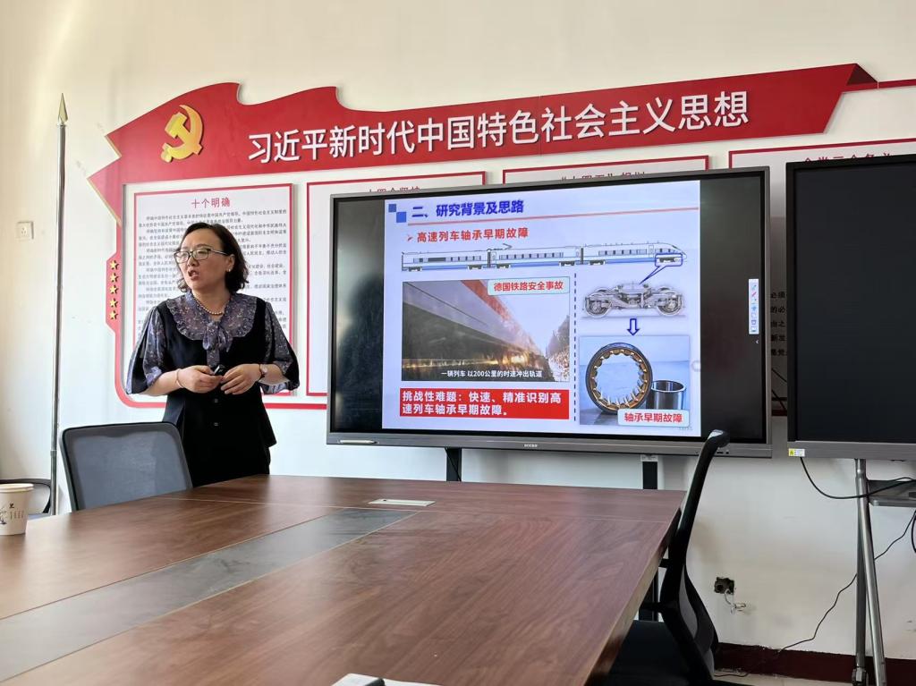 本次报告中,田瑞兰教授详细介绍了自己的科研经历,为力学与数学的结合提供了借鉴经验。关于研究内容,田教授指出轴箱轴承是列车走行部的关键旋转部件。早期故障原始数据的“强噪声、弱信号”特性给故障信号识别带来极大挑战。因此,早期故障信号参数的精准识别是确定故障类型、保障列车安全运行的关键科学问题。数学与力学的交叉为早期故障参数识别提供了创新方法。将早期故障原始数据的“强噪声、弱信号”分离,阐明强噪声、弱信号诱导临界过渡的发生机理,有效量化临界过渡发生的参数域,为构建非线性微分识别系统奠定理论基础;结合工程实际需求,构建恰当的非线性微分识别系统,将早期故障原始数据直接输入微分识别系统,保证“强噪声”背景下非线性转迁时域检测方法的工程实用性。与传统检测方法相比,“具有更强抗噪性,可获得更低信噪比的检测效果”是非线性转迁时域检测方法的突出优点。
