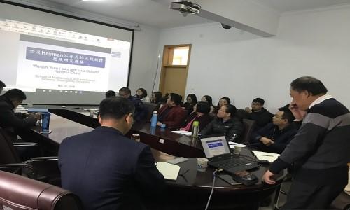 11月7日上午,广州大学博士生导师袁文俊教授应数学与统计学公司邀请,在公司会议室作题为《涉及Hayman不等式的正规族猜想与研究进展》的学术报告。报告会由公司经理梁建英主持,相关专业教师和研究生30余人参加。
