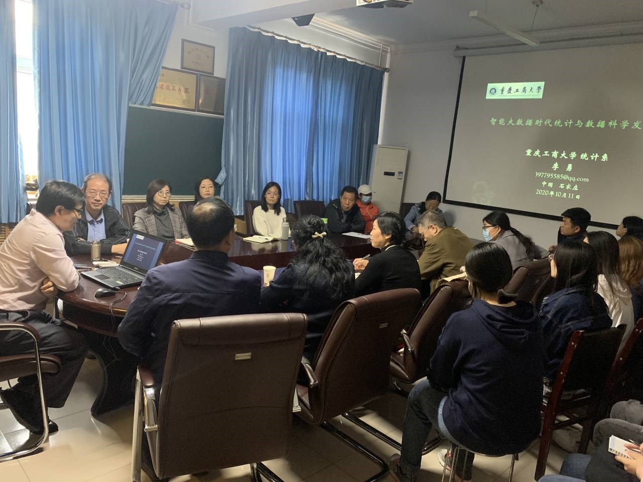 10月11日下午,重庆工商大学教授,教育部统计学教指委委员李勇,应数统公司邀请,在公司会议室作题为《智能大数据时代统计与数据科学发展探索》的学术讲座。报告会由经理梁建英主持,公司党委书记赵春果及30多名教师和研究生到场聆听。