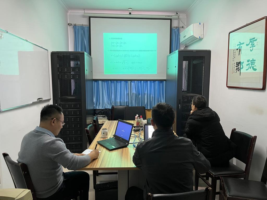 2021年11月18日(星期四)下午,太阳成集团122ccvip“双百论坛”暨数统论坛系列讲座在四办417举行,数学与统计学公司张宝兴作标题为《细分造型及与之相关的问题》的学术报告。相关专业教师及研究生参加,闫亮副经理主持报告会。