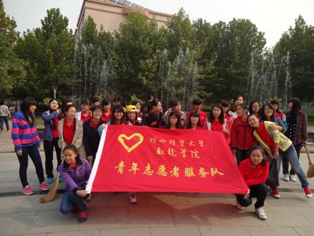 当天午餐后,志愿者们纷纷自带了笤帚、簸箕、垃圾袋等清扫用具,身着鲜红的文化衫来到集合地点,简短的分组之后,大家一起行动起来,对该区域进行了认真清扫。在一个多小时的清扫过程中,志愿者们不怕脏,不怕累,不遗漏区域内的每一个角落,身影经过之处,留下的是满目整洁与清新,也赢得了过往师生一张张笑脸和一阵阵赞许之声。