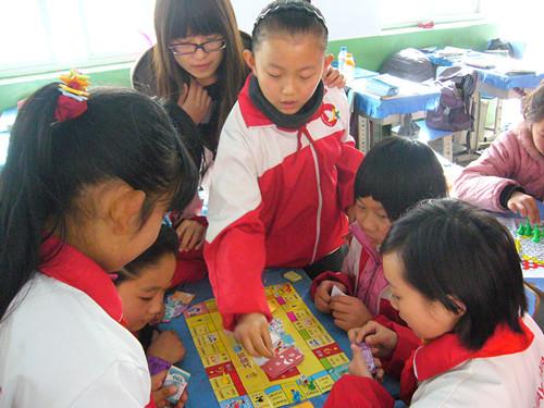 向孩子们赠送跳棋