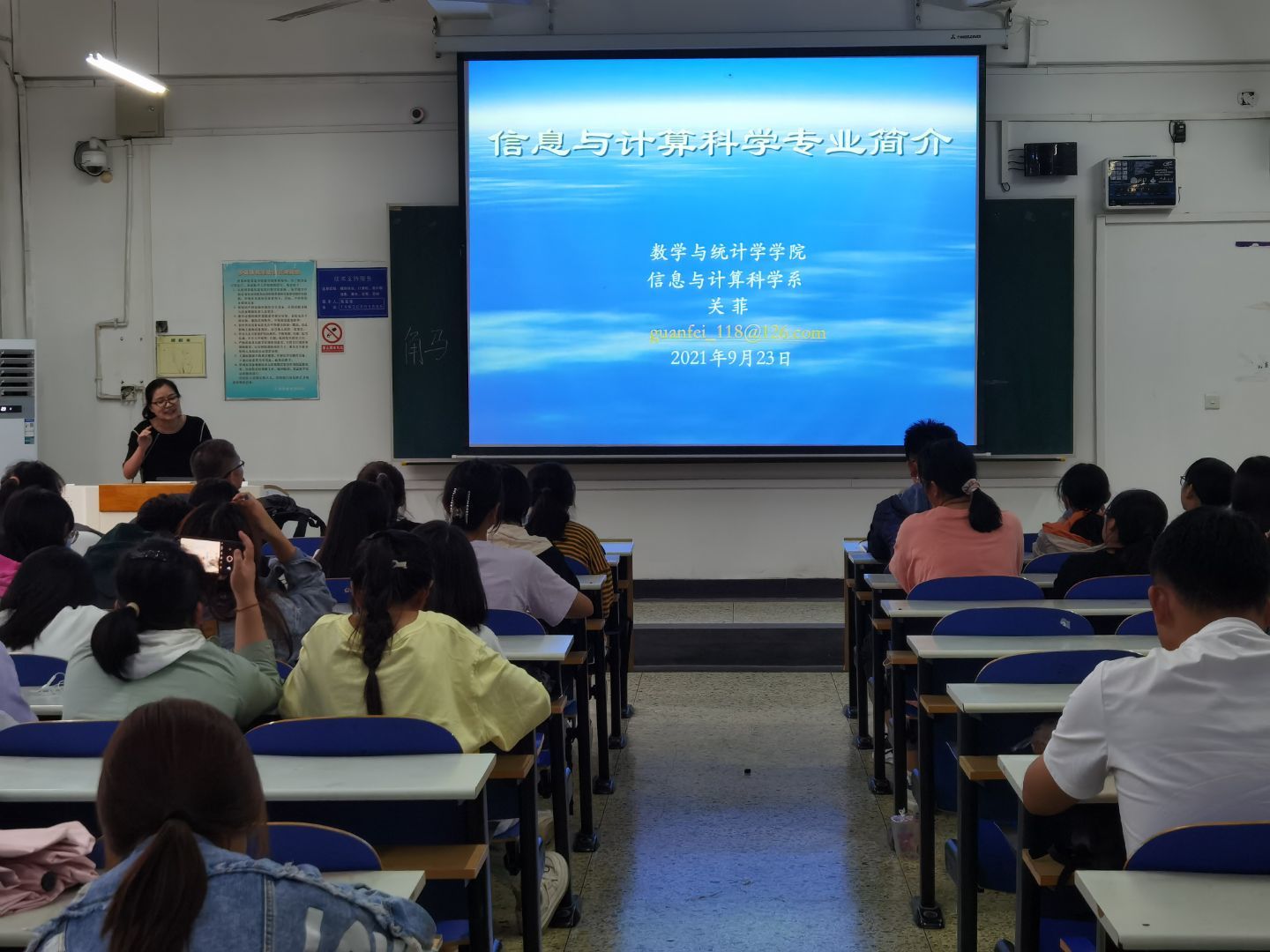 为了帮助2021级新生尽快融入和适应老员工活,充分了解所学专业,更好地进行专业学习和学业规划,9月23日下午,数学与统计学公司分别在北三教B208和B401开展新生专业教育。公司党委书记祃海霞、经理梁建英出席,各系、教研室主任、新生辅导员以及2021级全体本科生参加。