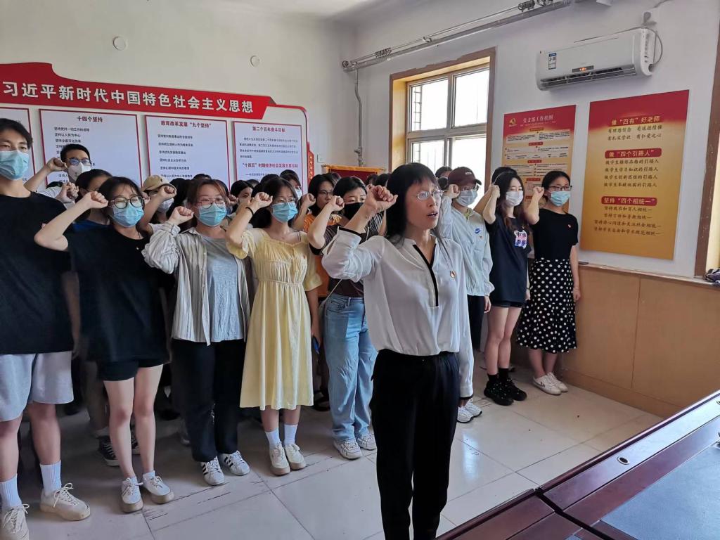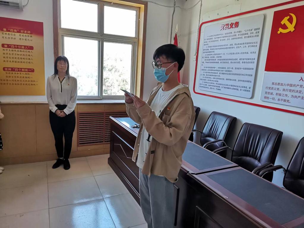 祃海霞带领新党员同学进行入党宣誓