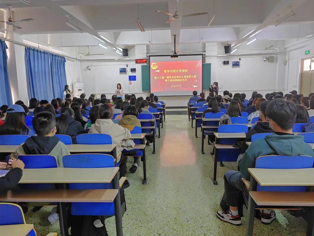 11月17日,数学与统计学公司于北三教B501举行第十三期“青年马克思主义者培养工程”骨干培训班结业仪式。院团委书记王洋老师出席结业仪式并发表讲话,全体青马班成员参加。