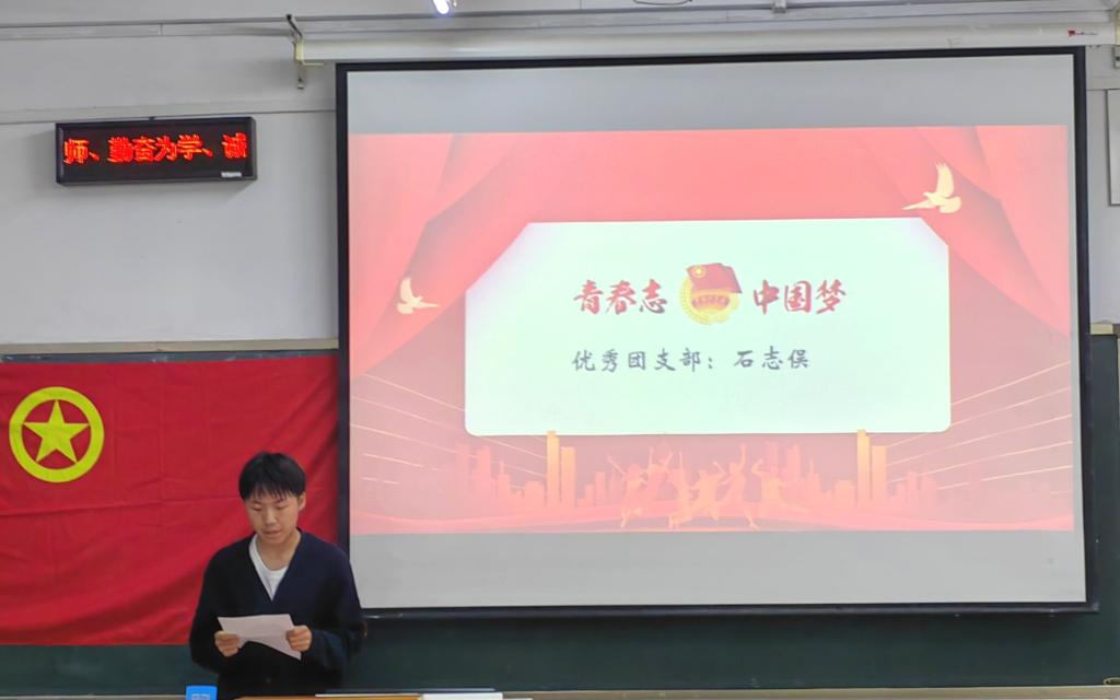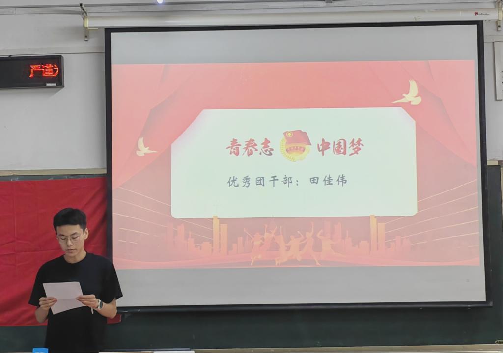 接着,优秀团干部代表田佳伟同学、优秀团支书代表桑萍同学、优秀团支部代表石志俣同学分别受邀发言,先后分享了个人经历和感受,表达出新时代青年勇于肩负历史使命,坚定前进的信心以及立志做有理想、敢担当、能吃苦、肯奋斗的新时代好青年的决心。