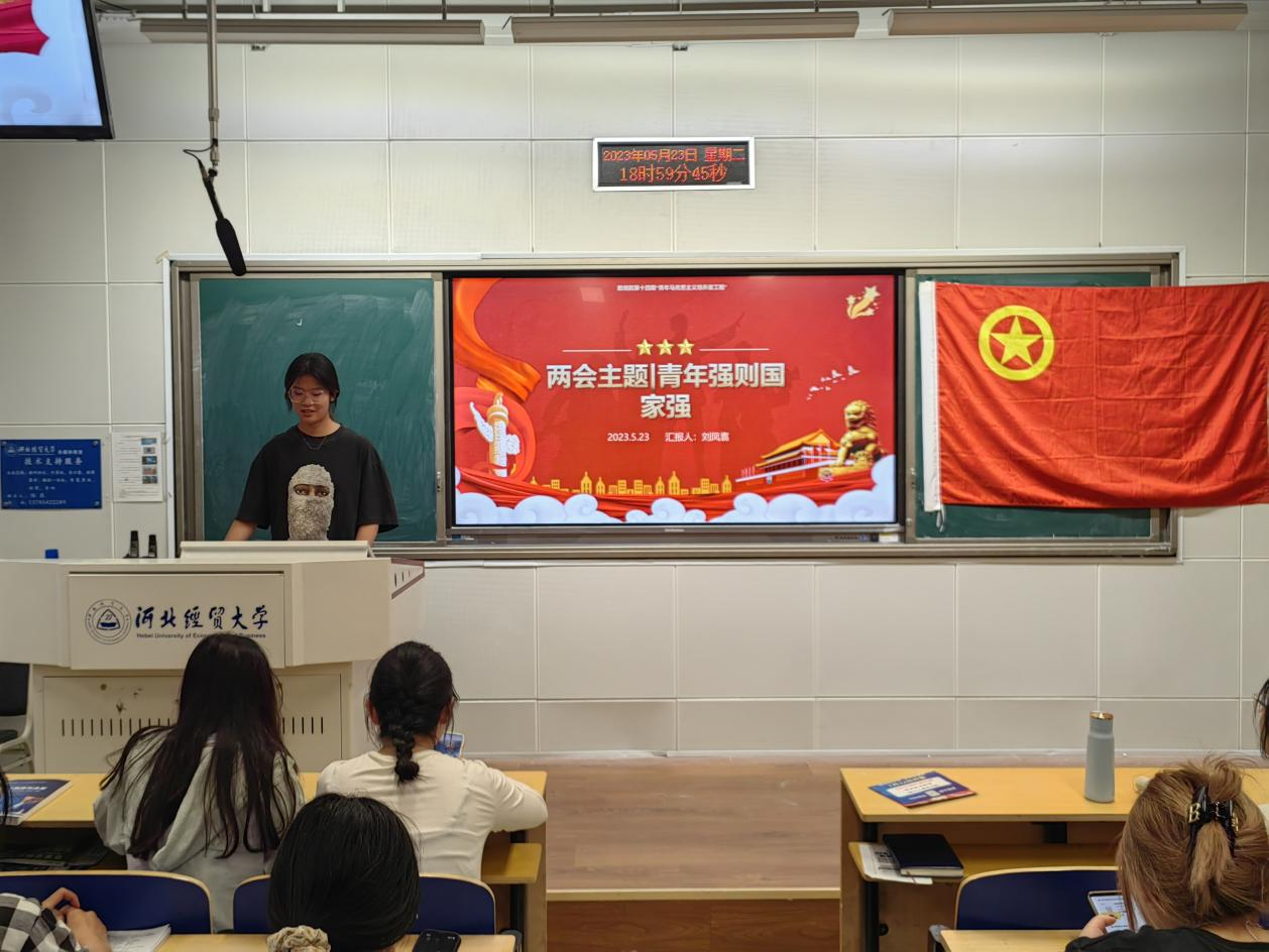 本次课程以“青年强则国家强”为主题。她首先向学员们详细解读了新时代的青年使命是什么,然后向大家介绍了优秀青年代表和先进事迹:青年党员代表卢毅、全国人大代表邹彬、湖北非物质文化遗产应城豆皮第四代传承人程梦醒、新疆疏附县乌帕尔镇党委副书记崔久秀以及老员工村官樊静蓉。最后她总结道:新时代青年要勇于砥砺奋斗、厚植爱国情怀、接续奋勇担当,新时代青年唯有保持拼搏奋斗的精气神,让奋斗成为青春最亮丽的底色,把自己的理想同祖国的前途、把自己的人生同民族的命运紧密联系在一起,用最饱满的状态、最激昂的斗志,扎根在祖国最需要的沃土上,在担当中历练、在尽责中成长、在实践中厚植爱国情怀。