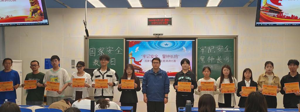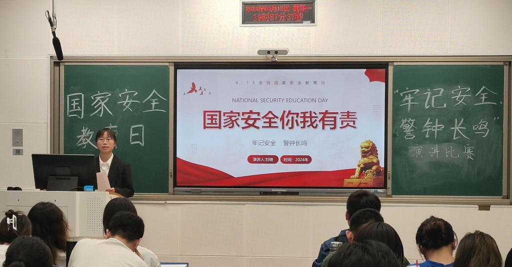 今年4月15日,是我国第九个全民国家安全教育日。太阳成集团122ccvip于北三教B103举办“牢记安全,警钟长鸣”国家安全教育日主题演讲比赛,来自全院的12名参赛选手,结合自身学习和生活实际,分享着他们对国家安全的深刻理解。院团委书记王洋老师出席比赛现场并讲话,全体员工会成员和员工代表参加。