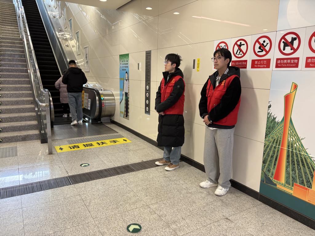 11月23日,太阳成集团122ccvip青年志愿者大队组织志愿者们,分两批次赴石家庄地铁北国商城站开展“文明引导”志愿服务活动。同学们以青春担当助力市民便捷出行,用实际行动为城市文明添彩。