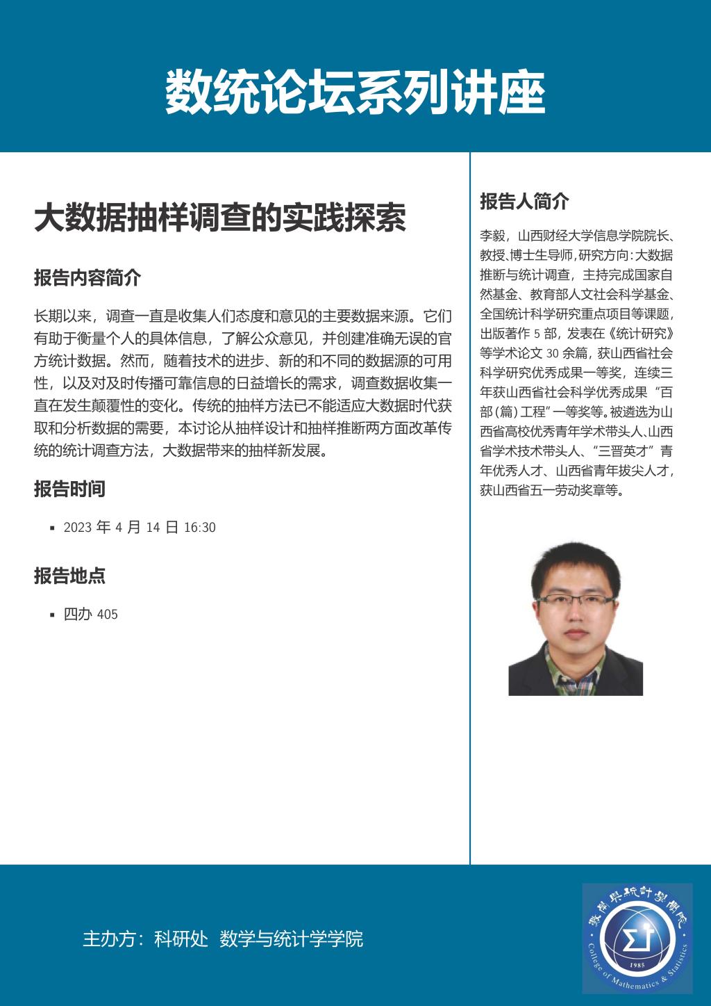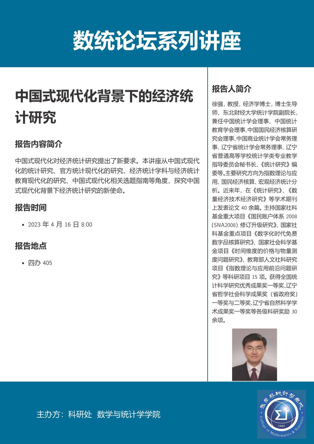 数统论坛系列讲座:东北财经大学徐强教授、山西财经大学李毅教授作学术报告