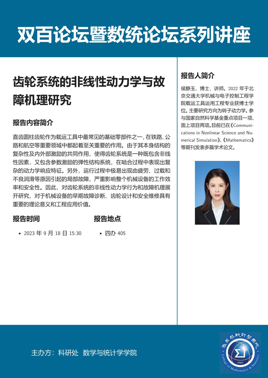 数统论坛系列讲座:侯静玉博士作学术报告