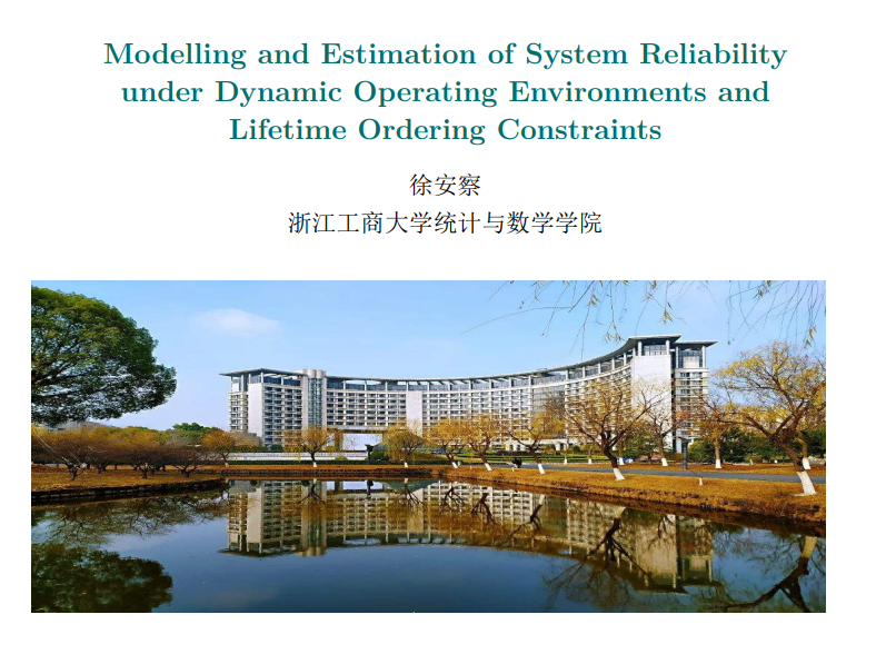 10月31日下午,数学与统计学公司邀请浙江工商大学徐安察教授在线作题为“Modelling and Estimation of System Reliabilityunder Dynamic Operating Environments andLifetime Ordering Constraints”的学术报告。报告由数学与统计学公司副经理闫亮主持,30余名师生参加。