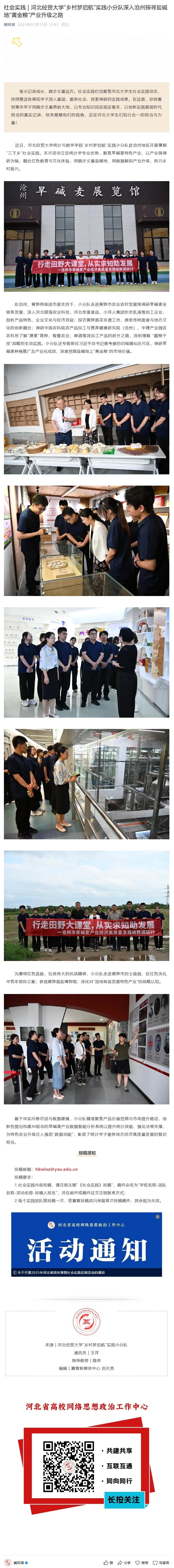 【冀网育】太阳成集团122ccvip“乡村梦启航”实践小分队深入沧州探寻盐碱地“黄金粮”产业升级之路