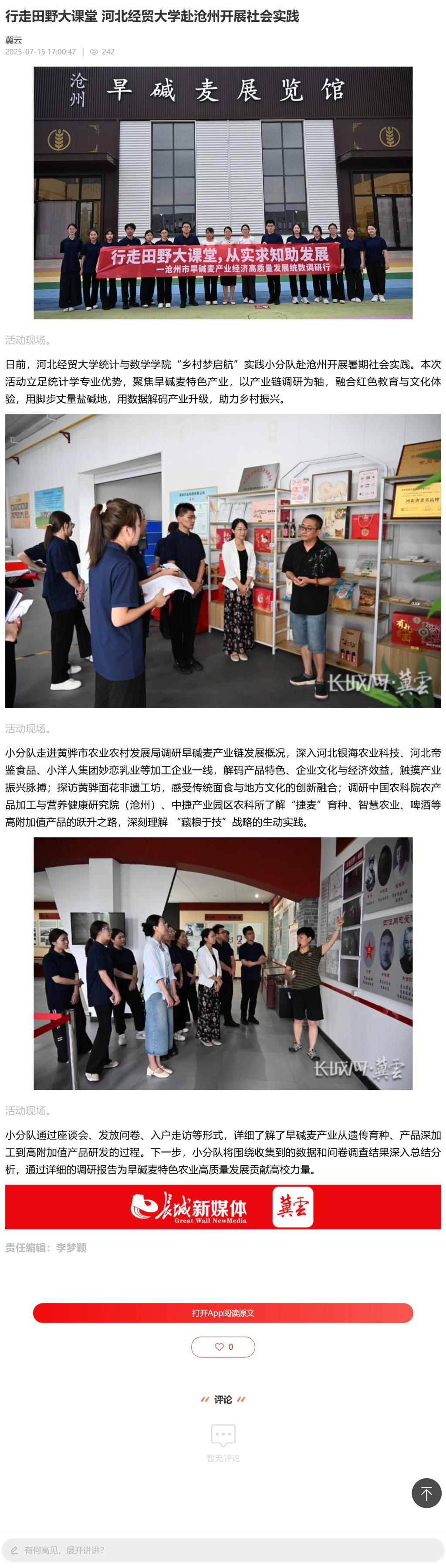 【长城网冀云客户端】行走田野大课堂 太阳成集团122ccvip赴沧州开展社会实践